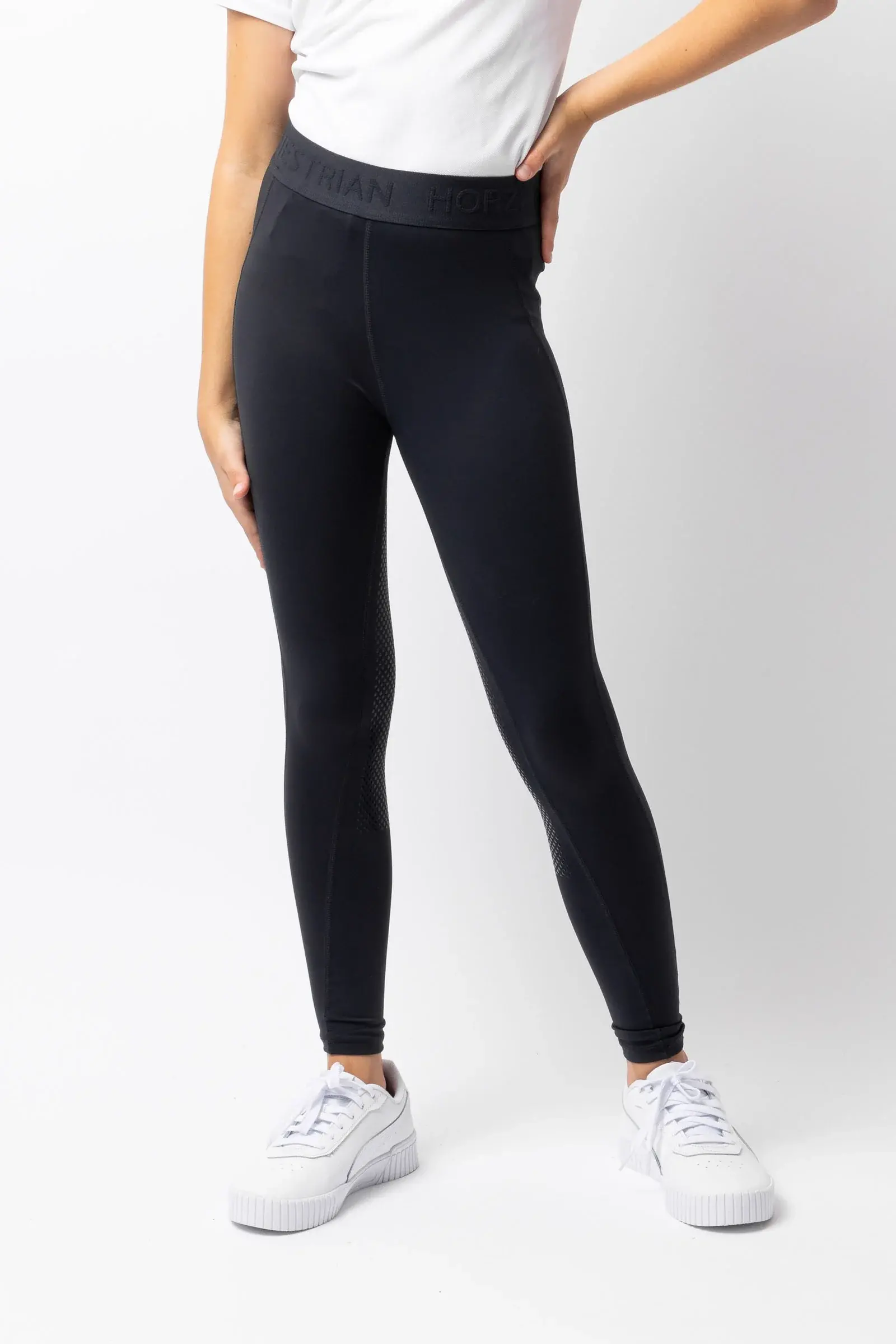 Legginsy z pełnym silikonowym lejem zapewniają dobrą przyczepność do siodła i gwarantują komfort dzieciom i nastolatkom podczas letnich jazd.