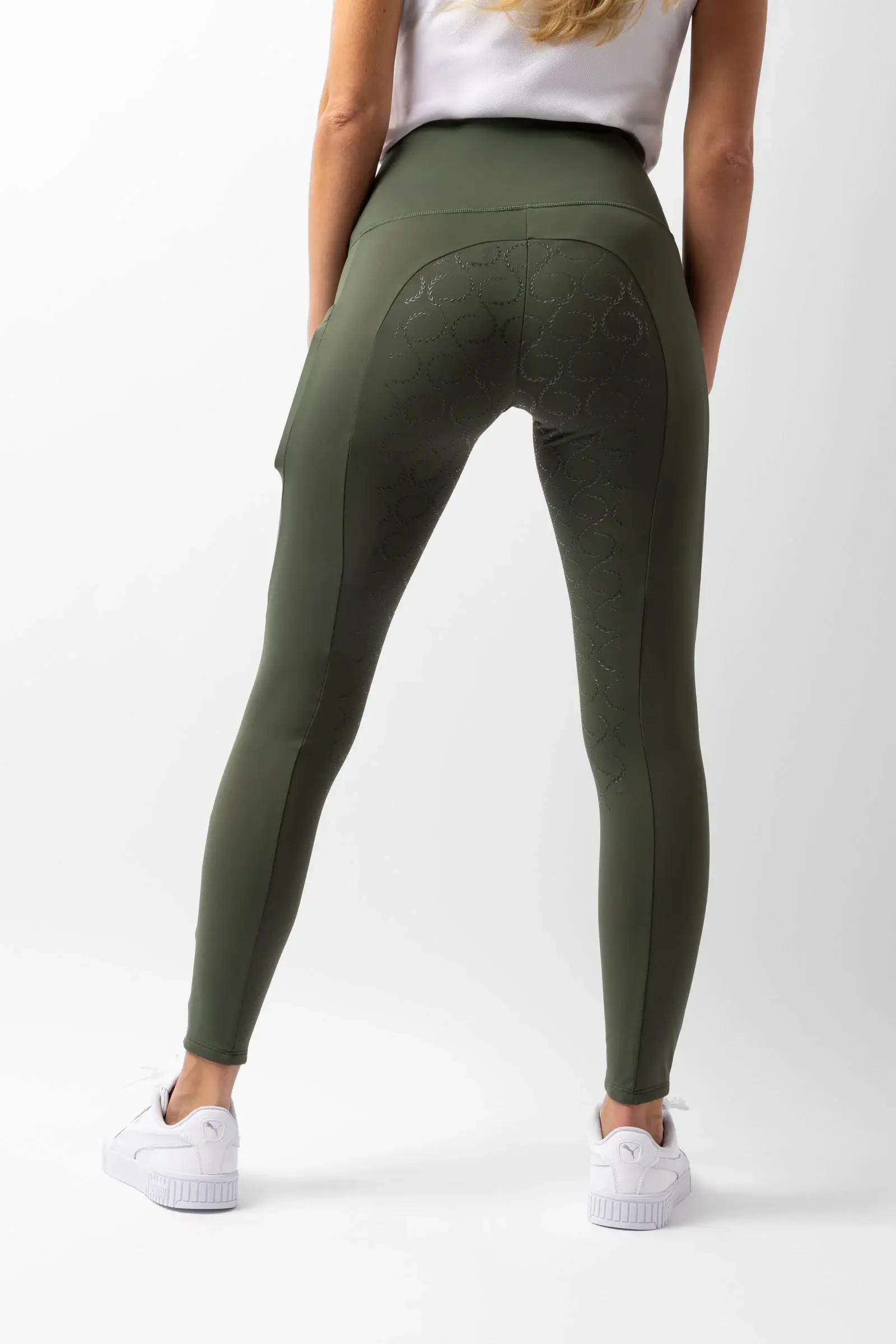 Gillian Damskie legginsy kompresyjne z pełnym lejem silikonowym khaki