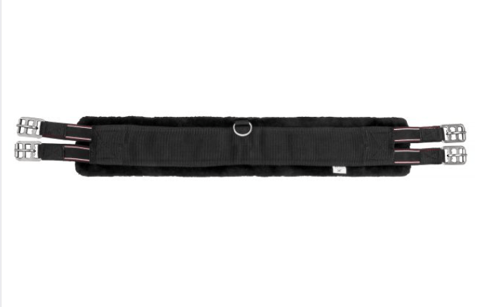 Wytrzymały, wszechstronny popręg, który doskonale sprawdzi się podczas codziennych treningów. Wykonany z poliestru, podszyty grubą warstwą syntetycznego, przyjemnego w dotyku futerka, które chroni przed otarciami. Elastyczne gumki zakończone stalowymi klamrami ułatwiają regulację popręgu. Wyposażony w metalowy pierścień pośrodku.