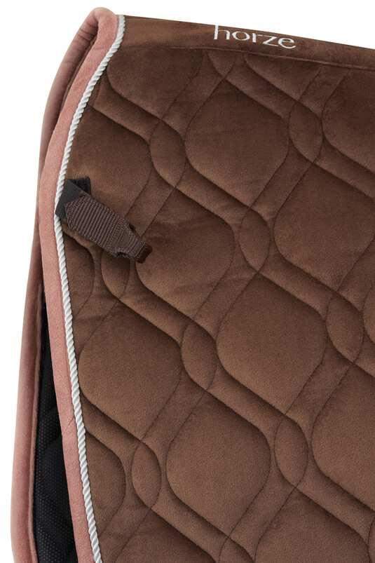 Ten czaprak ma nowy wzór pikowania, który doda nutę elegancji do każdej stylizacji jeździeckiej. Chłodząca podszewka w technologii Coolmax doskonale chłonie wilgoć, dzięki czemu Twój koń może cieszyć się wygodą i uczuciem suchości nawet podczas intensywnych treningów. Aksamitny materiał na zewnątrz ma nie tylko walory estetyczne - powierzchnia jest przyczepna, więc czaprak nie będzie wysuwał się spod siodła podczas jazdy. Ten model ma krótkie pętelki, dzięki którym wygodnie i stabilnie przypniesz czaprak do siodła, i regulowany pasek na popręg. Efektowne detale takie jak haft wzdłuż linii grzbietu i mała złota literka ',h', sprawiają, że ten czaprak nabiera oryginalnego uroku.