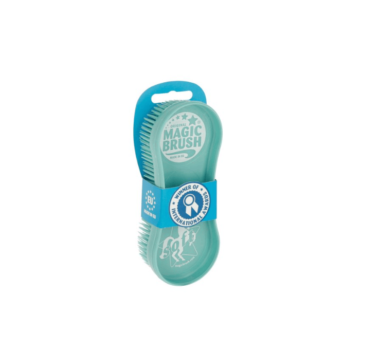 MagicBrush Soft to pielęgnująca i przytulająca szczotka, idealna do szczególnie wrażliwych miejsc koni i kuców, takich jak głowa i uszy. Nawet bardzo wrażliwe konie i kucyki cieszą się opieką dzięki nowej szczoteczce MagicBrush Soft. Wesoła kolorystyka - tropikalna żółć, jasnoniebieski i fioletowy - w połączeniu z kolorowymi nadrukami to świetna zabawa.